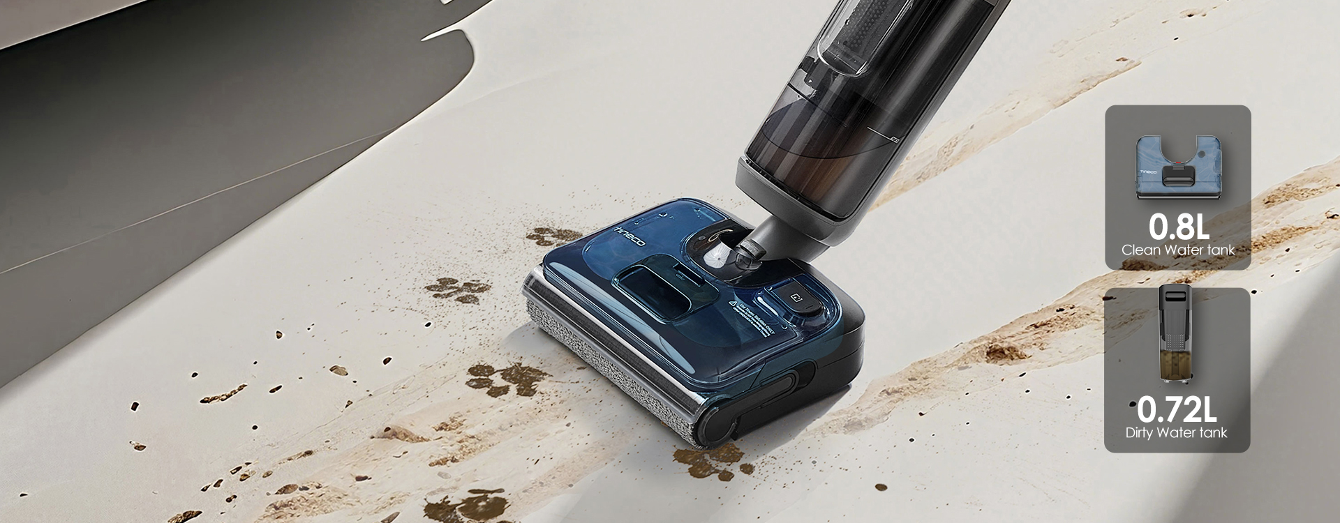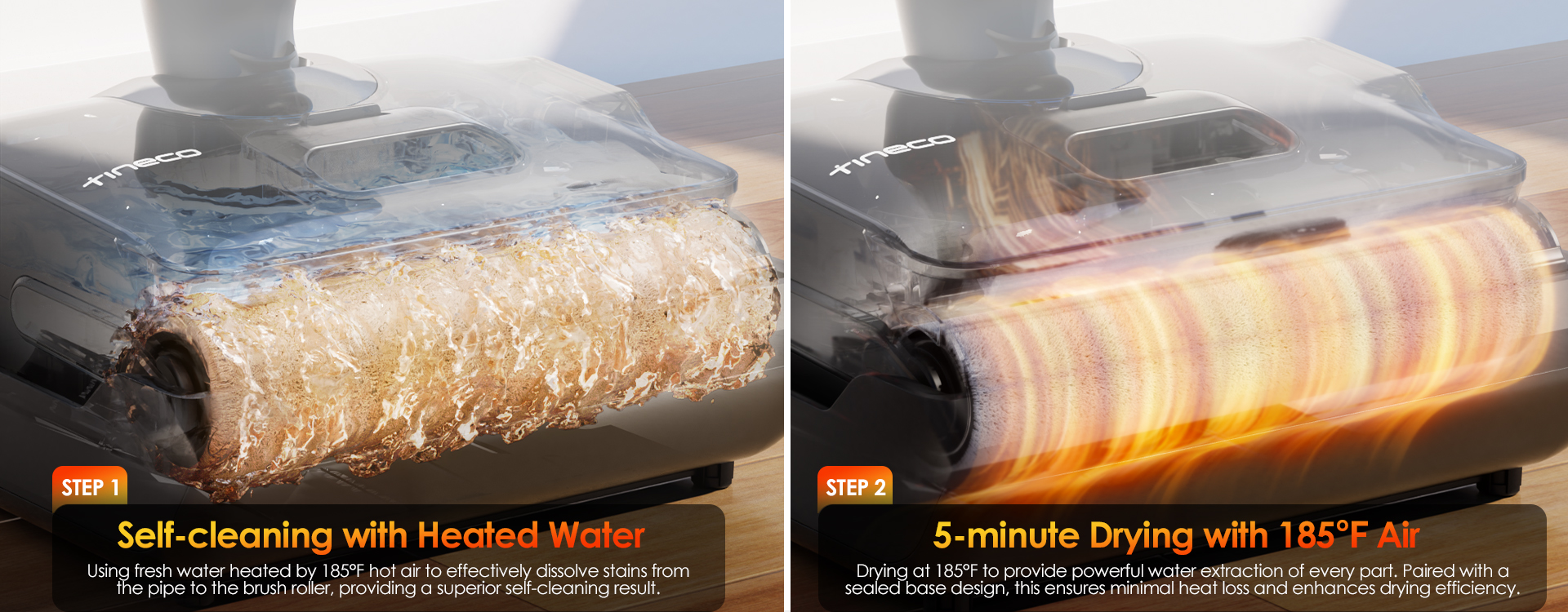 Easily tackle both wet and dry messes, cleaning and mopping the floor at the same time, and tackle tough and sticky stains on hard floors—solidifying its role as a top-tier Tineco wet dry vacuum.